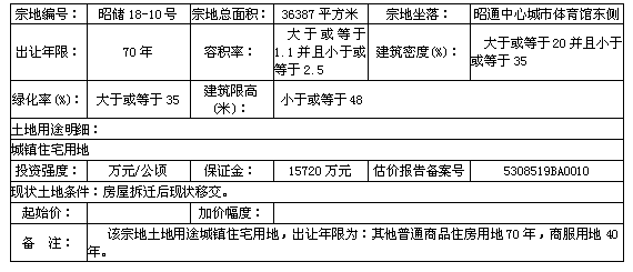 1.該宗國有建設(shè)用地使用權(quán)由昭陽區(qū)土地儲備交易中心委托昭通華龍拍賣有限公司拍賣。