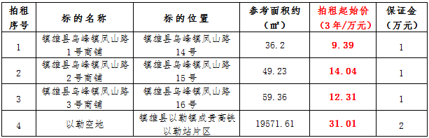 (三)拍租鎮(zhèn)雄縣城市運(yùn)營(yíng)管理有限公司國(guó)有門(mén)面3年期使用權(quán),詳見(jiàn)下表: